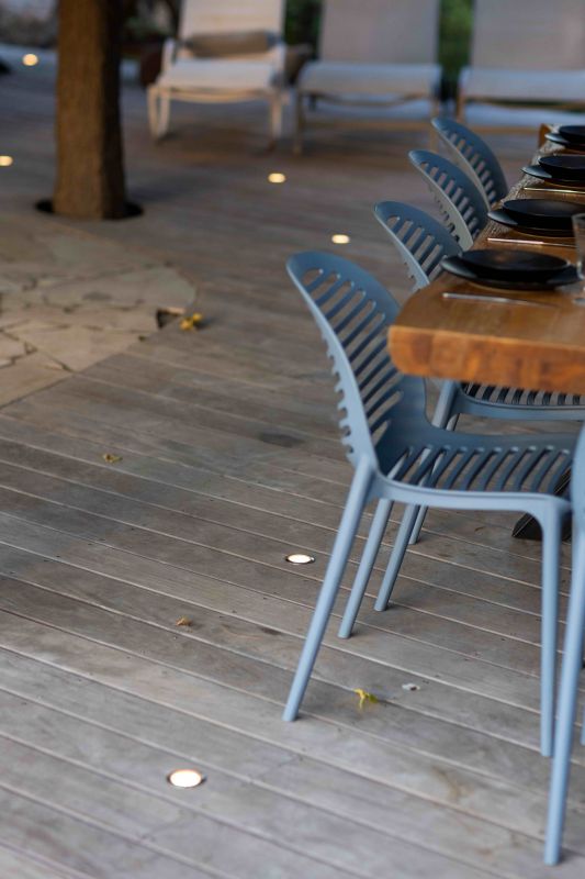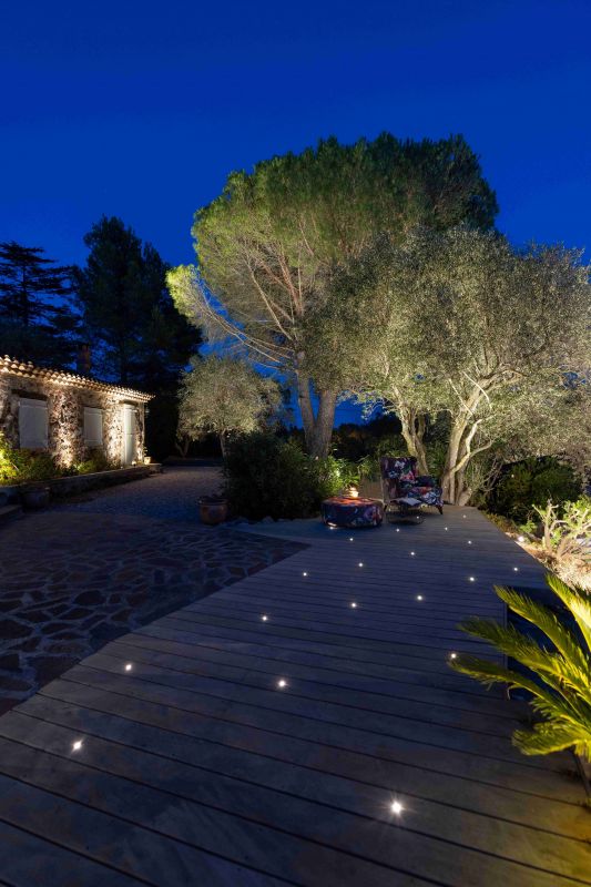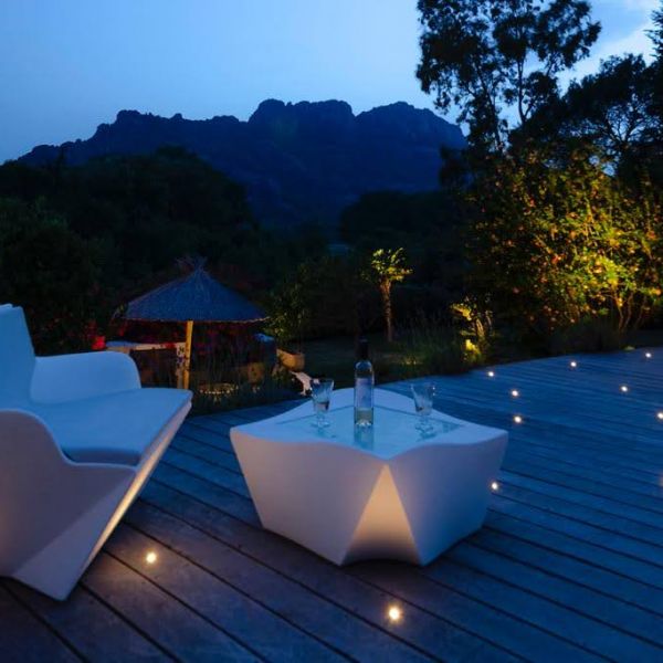 De pluis cet mise en lumière de terrasse bois procure un effet très reposant sur la zone lounge. Vous êtes comme en apesanteur, la tête dans les étoiles, nous dirons plus, vous êtes dans les étoiles. Ce type d’éclairage de terrasse très doux et relaxant dégage une ambiance intimiste.