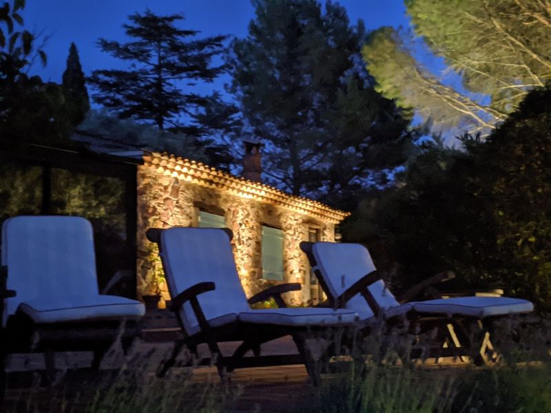 Le choix de cet éclairage de terrasse est esthétique et technique. Nous souhaitions préserver la perspective sur le Rocher sans être géné par l'éclairage.