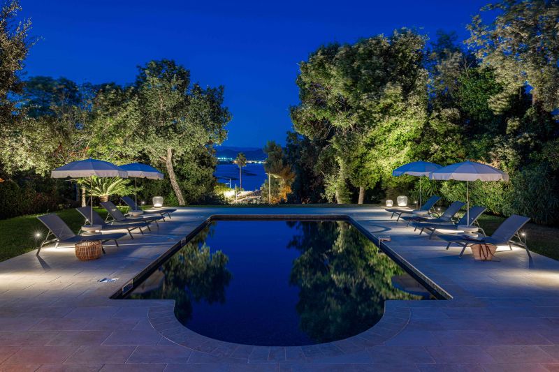 Cette approche globale permet de structurer les volumes, de souligner la végétation et de créer une ambiance nocturne élégante et immersive, parfaitement adaptée à une villa hôtelière de prestige.