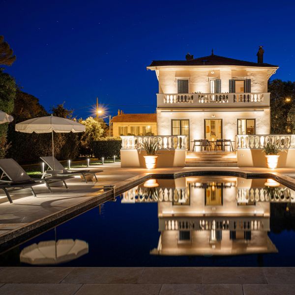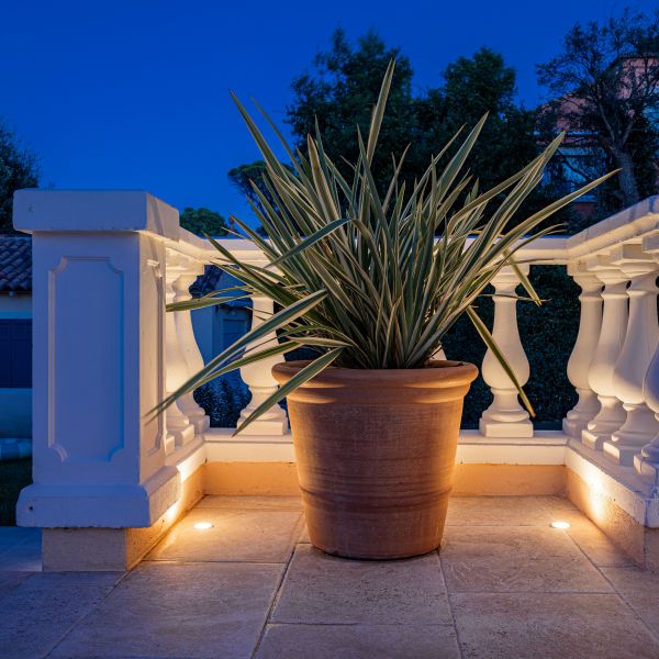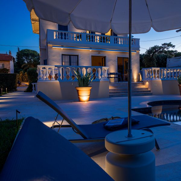 La mise en lumière de la Villa Pâquerette a été pensée comme un projet global, où chaque espace extérieur participe à une composition lumineuse cohérente et élégante.