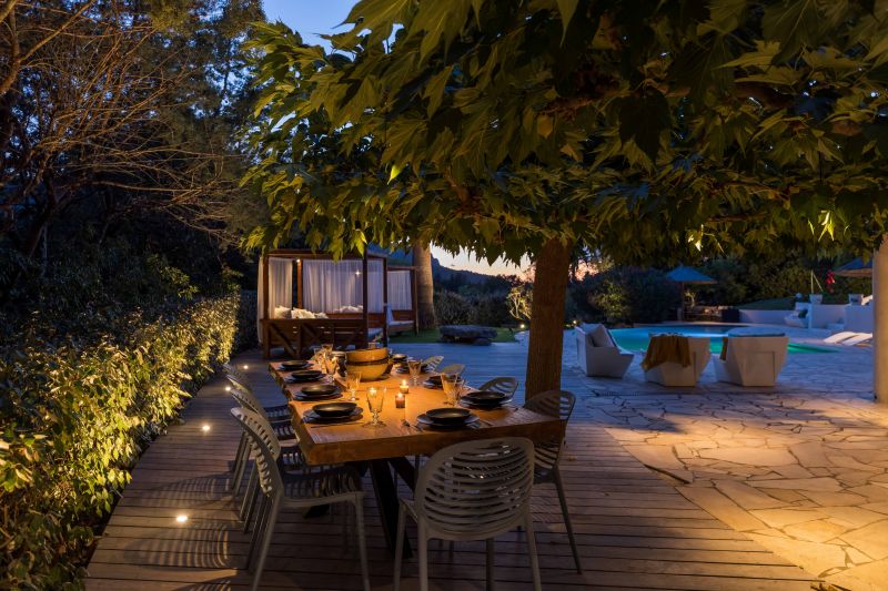 Le choix de cet éclairage de terrasse est esthétique et technique. Nous souhaitions préserver la perspective sur le Rocher sans être géné par l'éclairage.