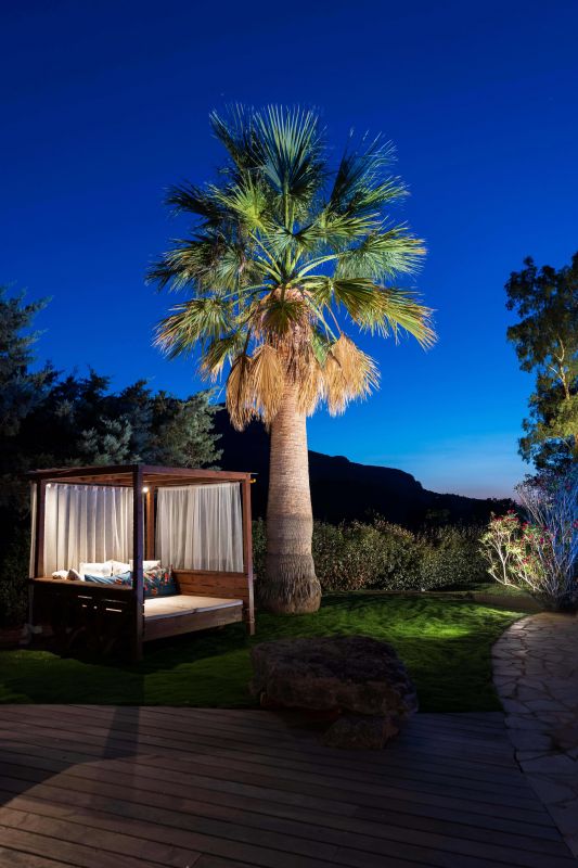 La mise en lumière de ce jardin méditerranéen peut débuter.