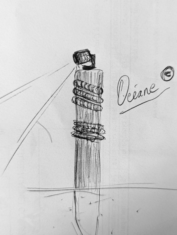 Au restaurant de l’éco resort en question, lors de ma visite, sur un bout de papier je griffonne mes idées et une esquisse de borne voit le jour.